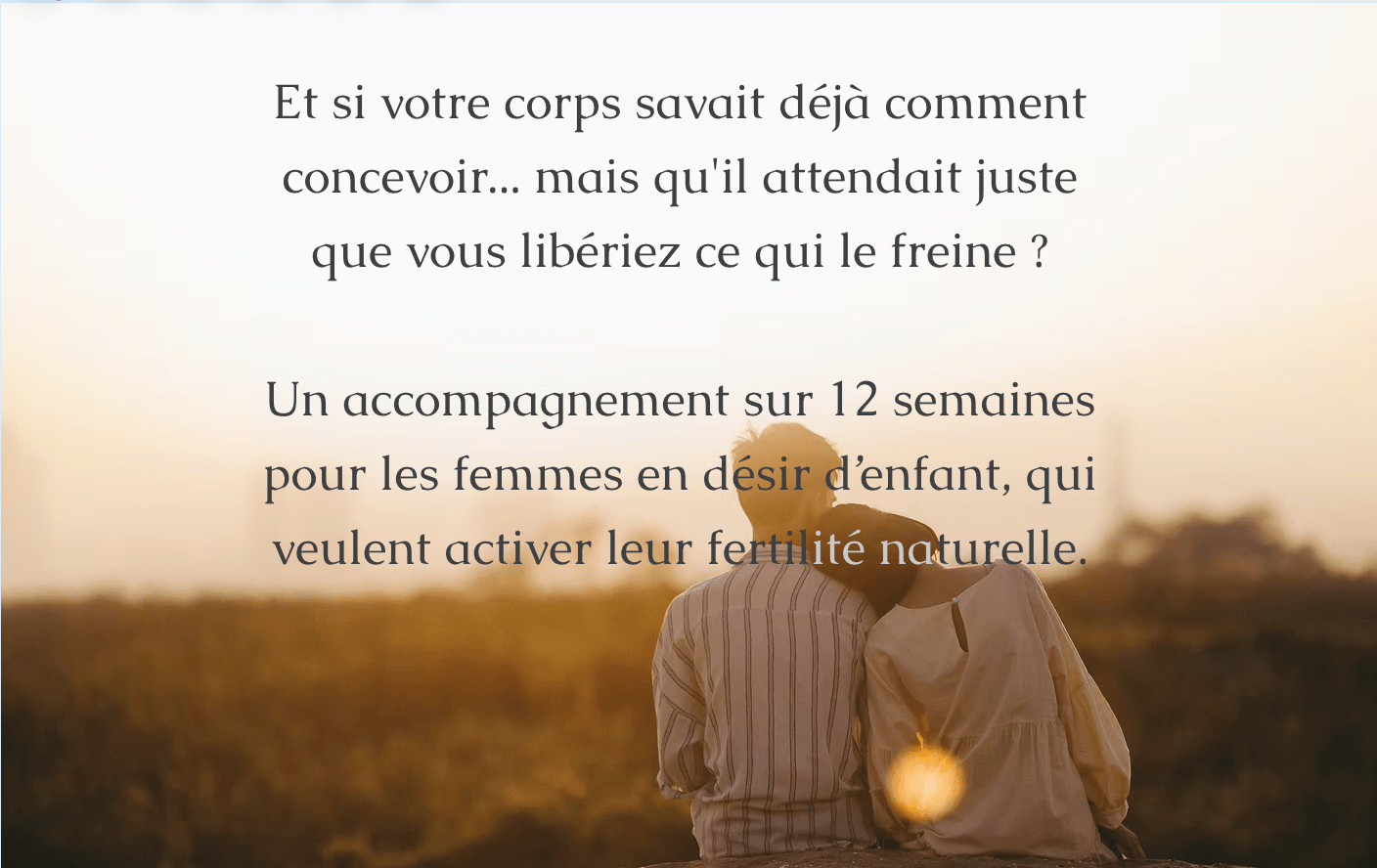 Un accompagnement en ligne pour libérer son corps des freins invisibles à la grossesse, retrouver une connexion profonde avec son utérus et améliorer sa fertilité naturelle en 12 semaines.